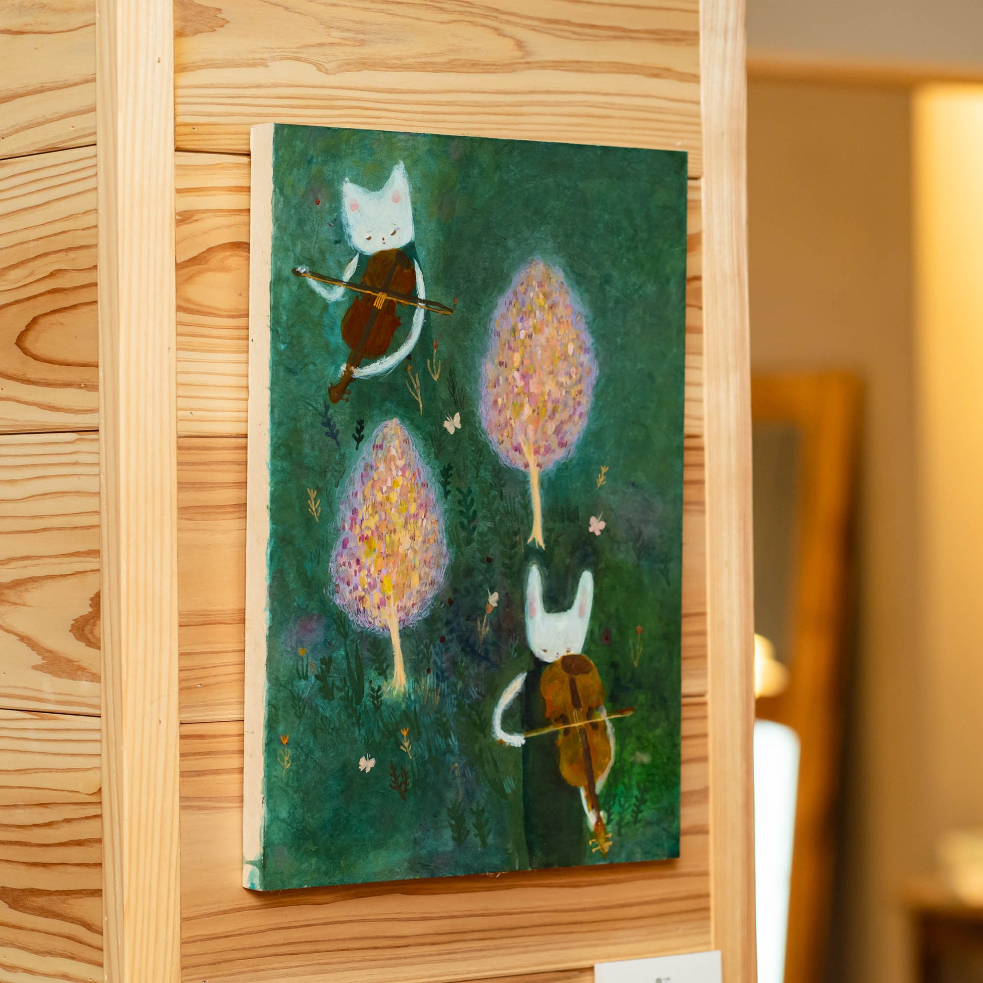 日々の風景から汲み取った心象を自身の中で再構築し、手づくりの下地と透明感のある色彩を重ね合わせながら、静謐で物語性のある世界を描いています。