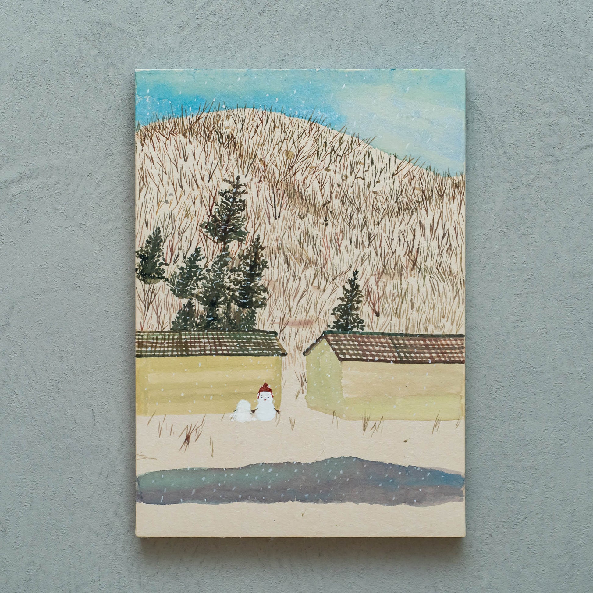素材:パネル、手漉き和紙、水彩
