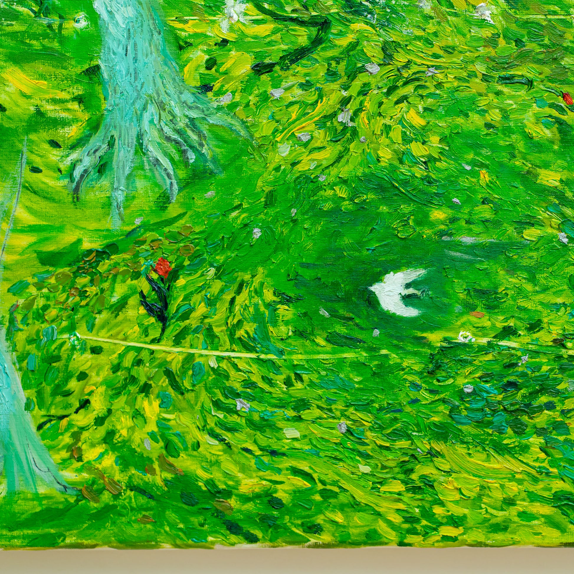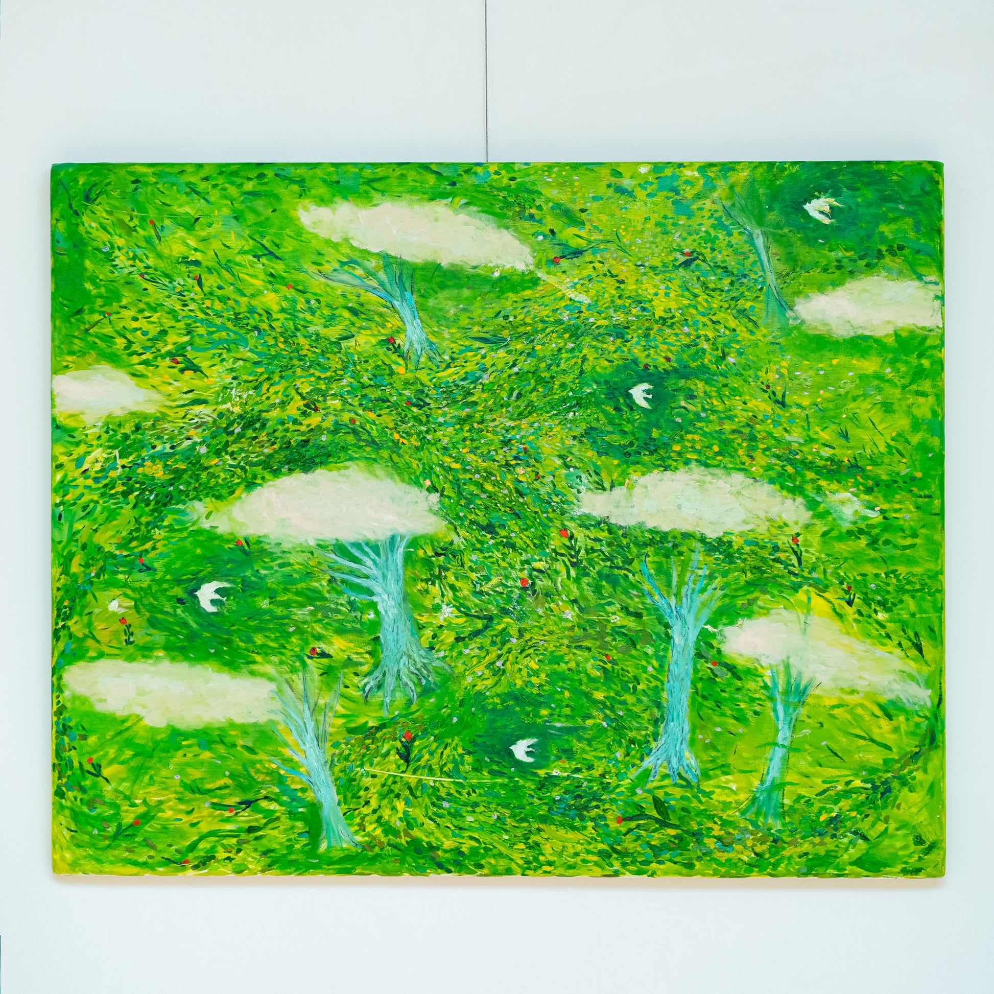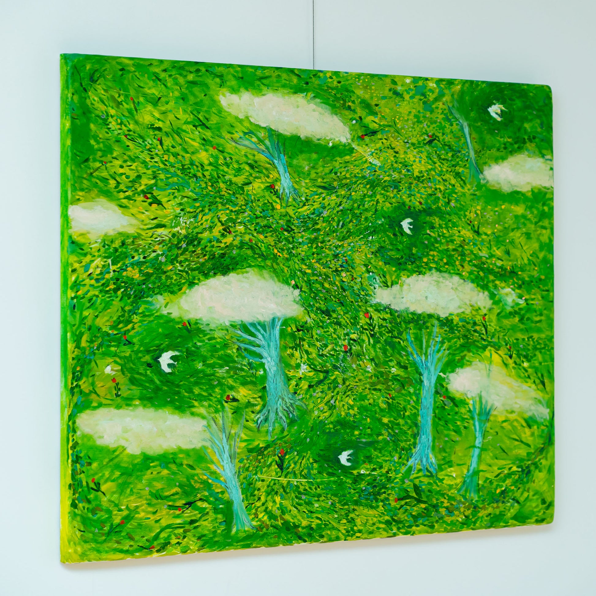 それらを自らの表現としてデフォルメし、手作りの下地と色彩で絵を描いています。